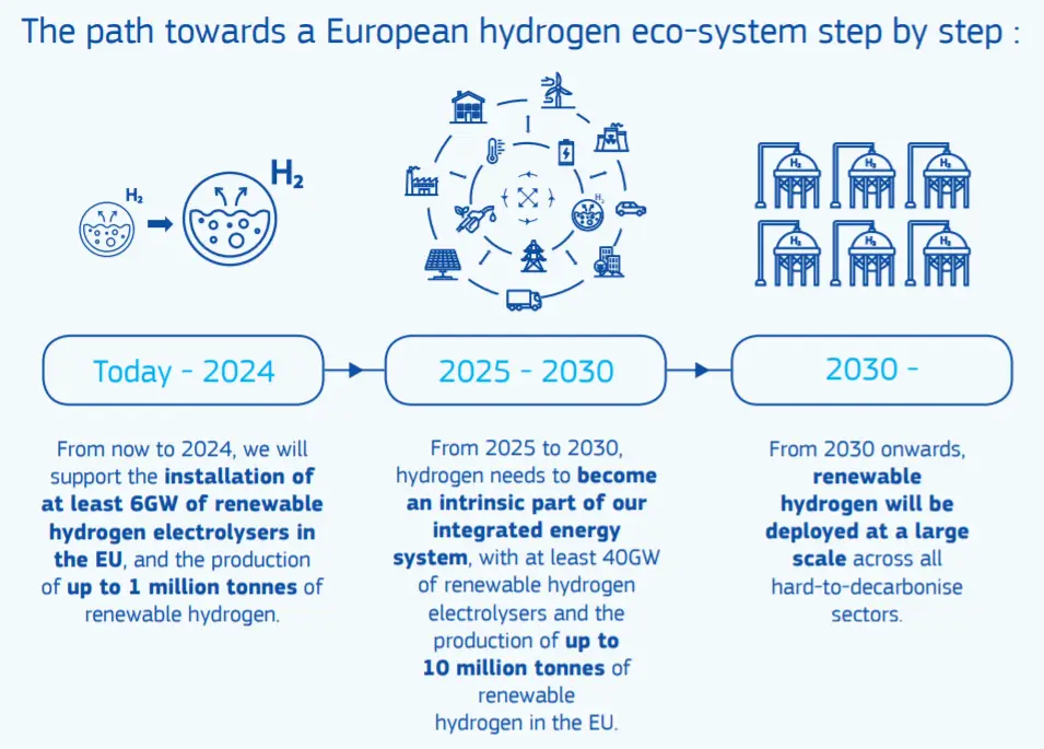 • EU’s policies to support and stimulate investments to build a fully-fledged hydrogen ecosystem